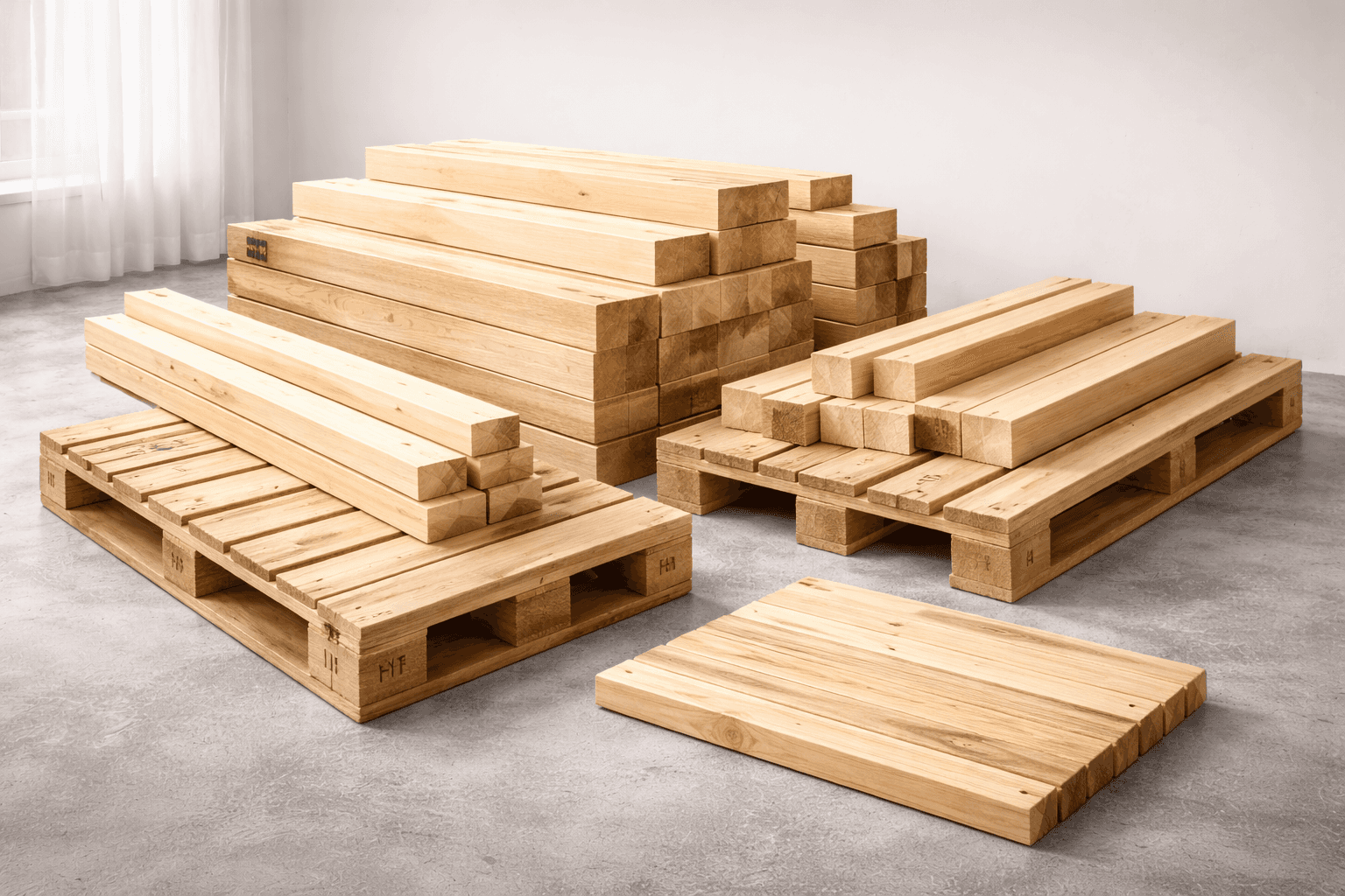 Madera de pino con tratamiento térmico certificado para exportación (Certificación NIMF 15), disponible en distintas escuadrías como 1x2, 1x3, 1x4, 1x6, 2x2, 3x3 y 4x4, además de pallets certificados 80x120 y 100x120, adaptándose a requerimientos constructivos, estructurales y de exportación según cada proyecto.